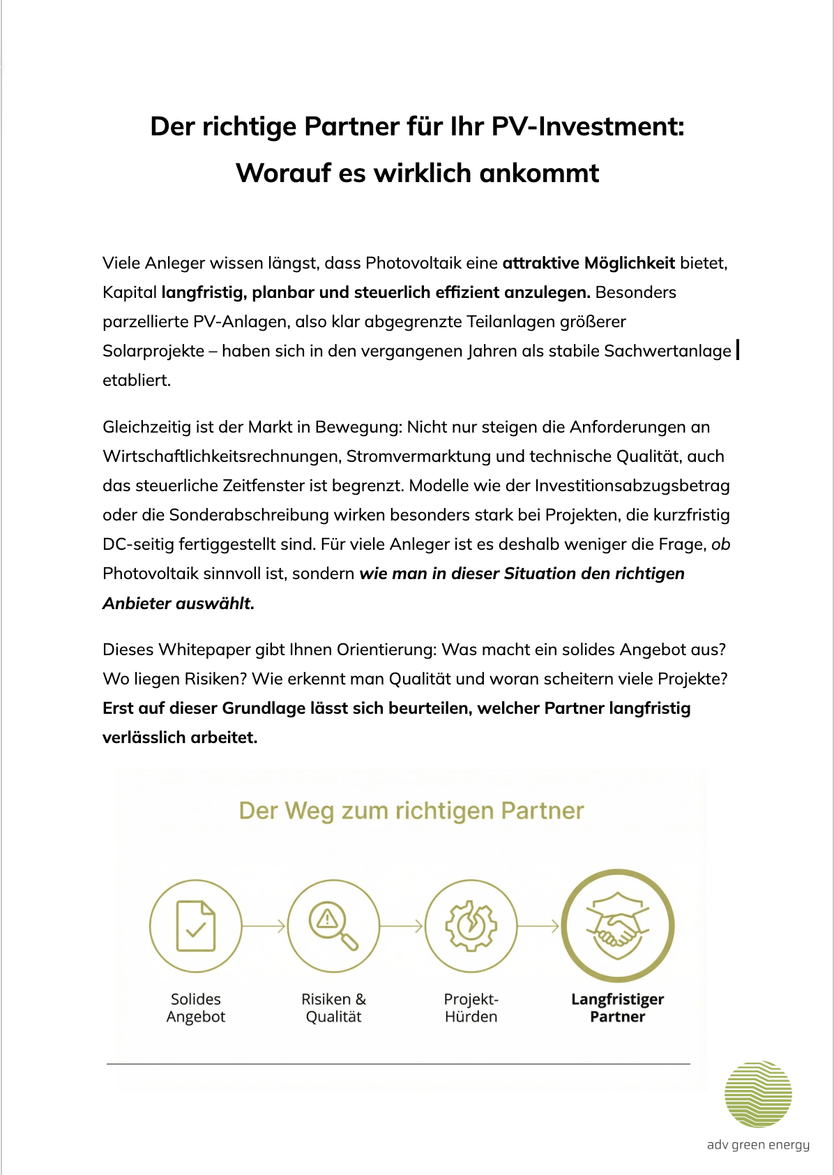 Whitepaper: Richtigen Partner für PV-Investment: Worauf es wirklich ankommt